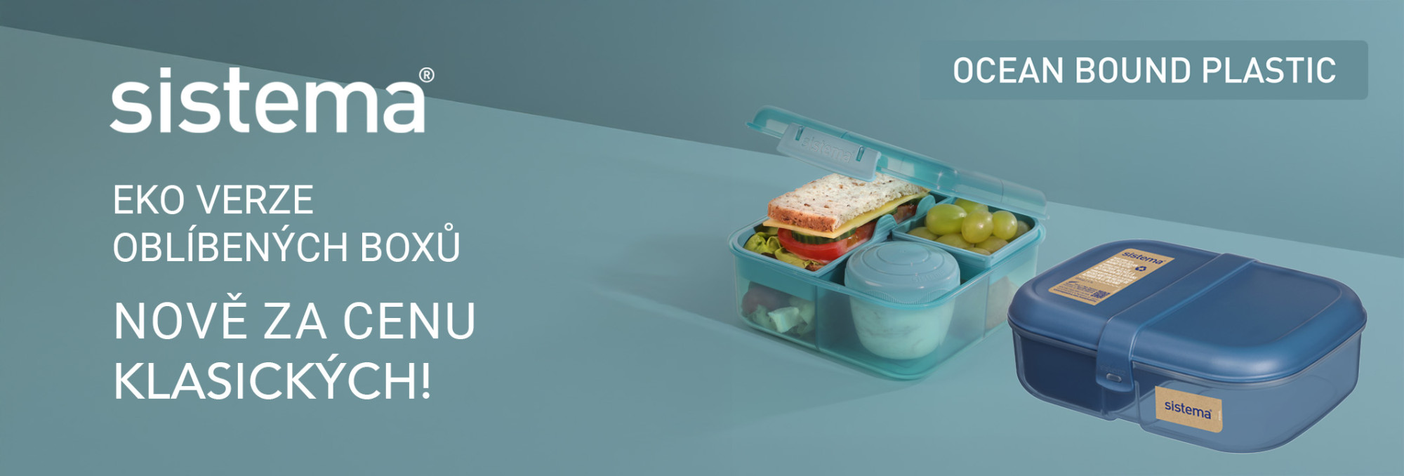 ViceŘada krabiček a láhví Sistema® Ocean Bound je vyrobená z 35 - 50 % plastu sesbíraného z vodních toků, pláží a pobřeží. Objevte krásné odstíny Teal Stone a Mountain Blue.