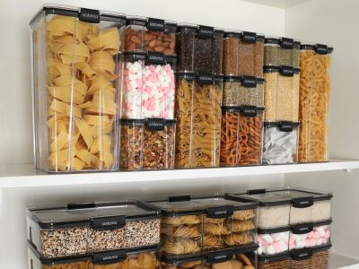 - 3) Organizace spíže – přehledné uspořádání surovin, díky čirému plastu máte vždy přehled o obsahu.