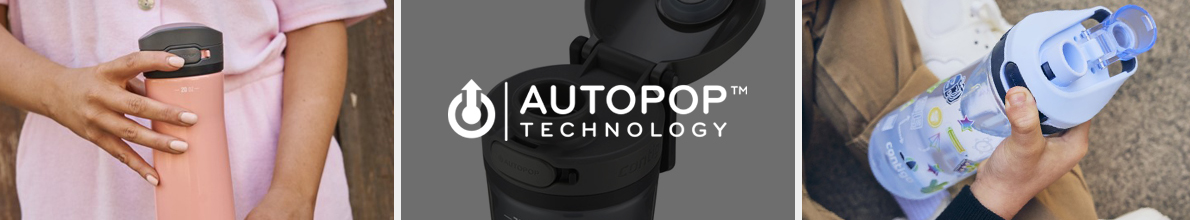 Stačí stisknout tlačítko AUTOPOP, otevře se víčko a odkryje otvor pro pití.